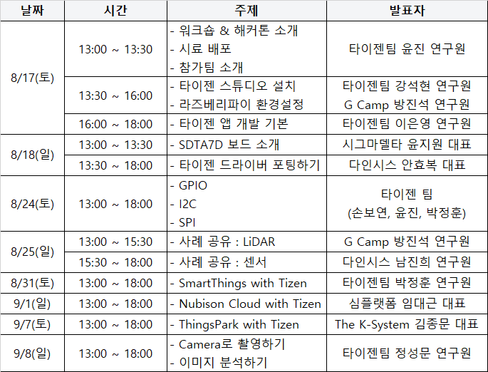 '19년 8~9월, 타이젠 워크숍 및 해커톤을 개최할 예정입니다.