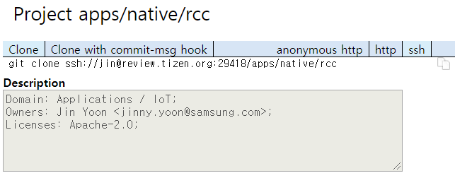 git clone ssh://[YOUR_ID]@review.tizen.org:29418/apps/native/rcc