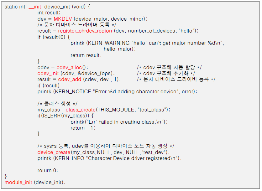 발표자료 중 - 문자 디바이스 드라이버 등록 함수 예시