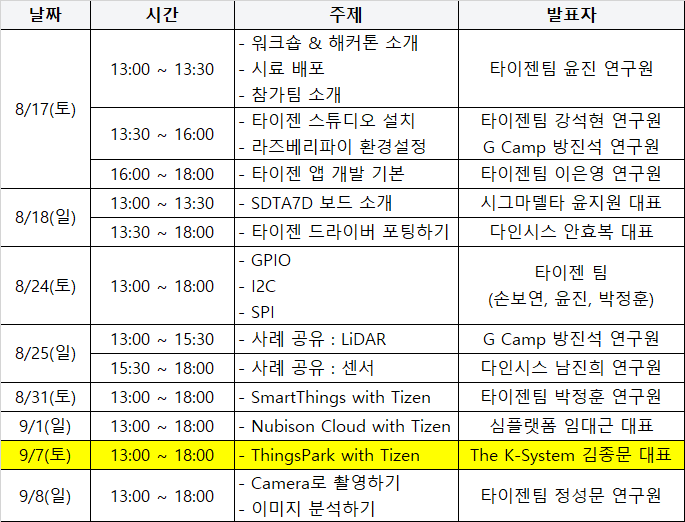 | [2019 서울 하드웨어 해커톤] 5일차 : SmartThings with Tizen (0) | 2019.08.30 |
