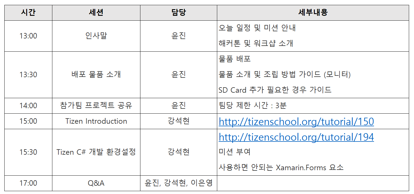 - 온라인 멘토링 : 슬랙채널(join.slack.com/t/tizen-iot/shared_invite/zt-g9hgl01u-ipLlB4pBCdebHJuGK4V~TQ)