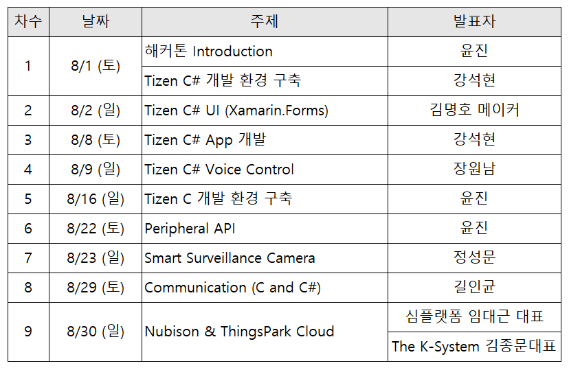 - 상시 오프라인 멘토링 : 타이젠 스페셜리스트 방진석 책임님, 기본환경설정 지원