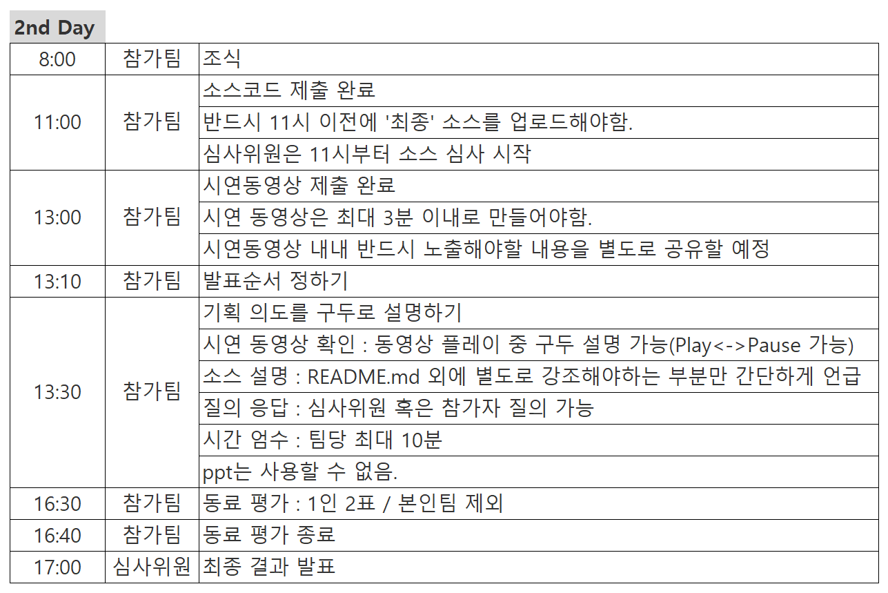 - 대상 : 해커톤 참가팀, 외부참여 일부허용