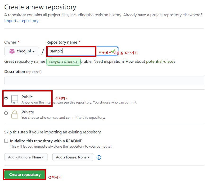 ⑦ Repo. 정보 입력하기
