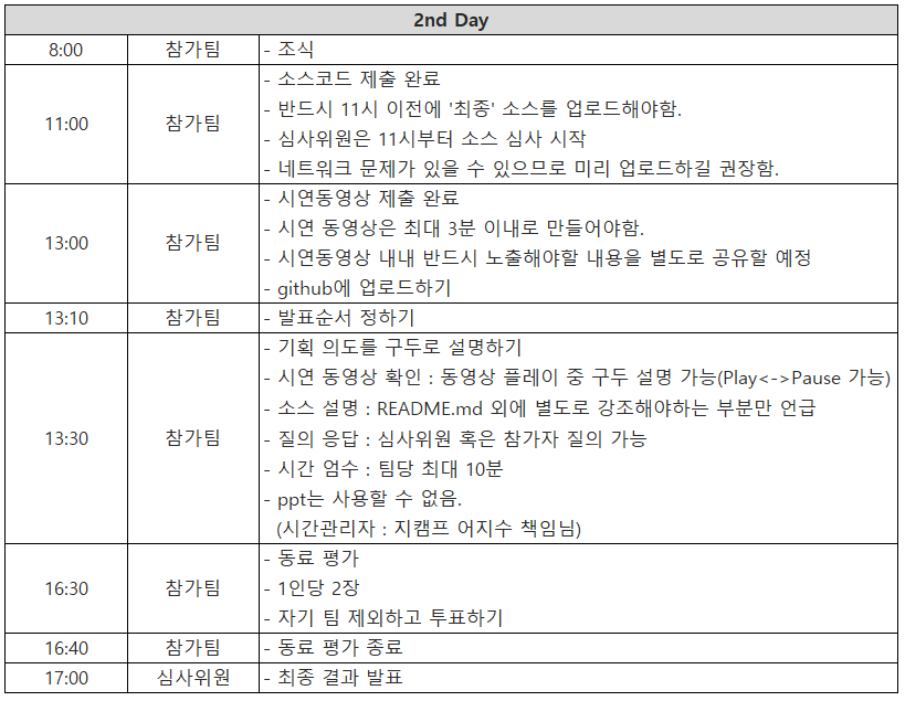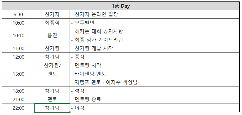 - 대상 : 해커톤 참가팀, 외부참여 일부허용