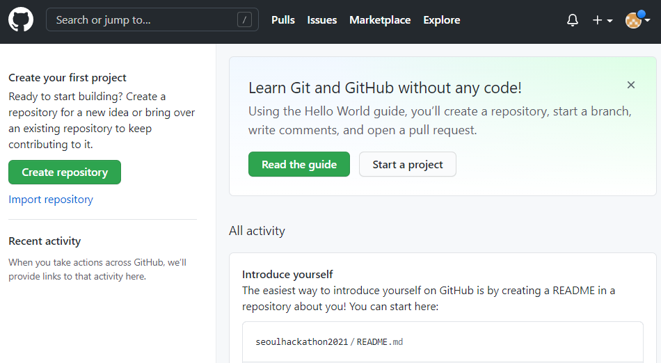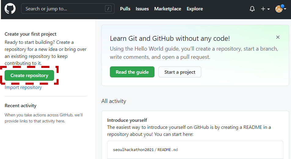 ⑤ 해커톤에서 사용할 Repository 만들기