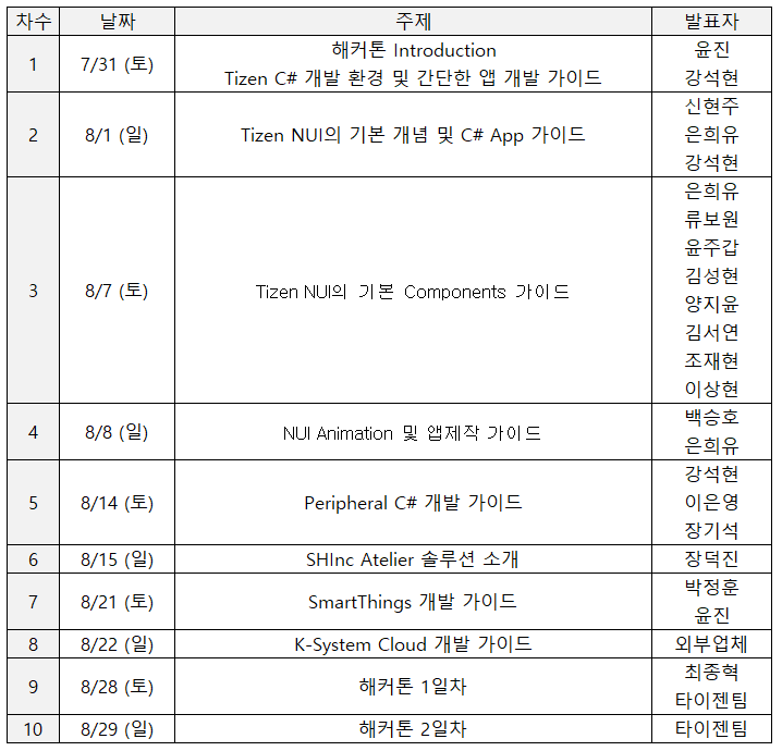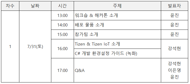 해커톤 기술워크숍 1일차 (타이젠, TIZEN), 7월 31일
