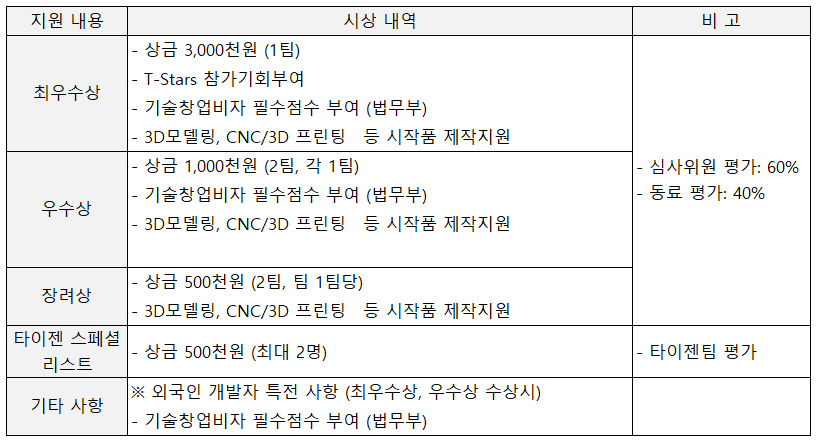 - 개발지원금 : 팀당 개발지원금 20만원 제공(사후 증빙 필요)