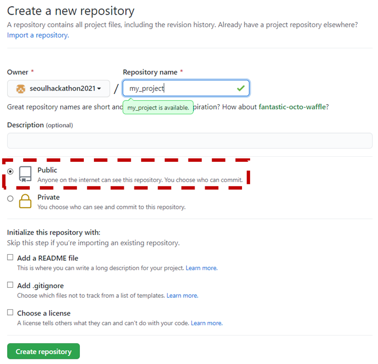 ⑥ 반드시 Public으로 해주세요~